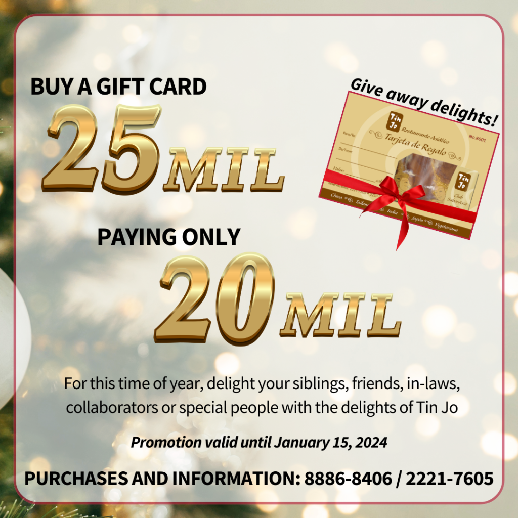 By getting a Tin Jo Gift Card, buy a 25k gift card by paying only 20k.