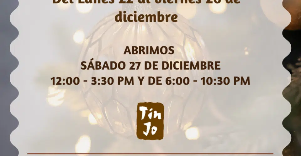 Durante estos días de celebración, nuestro equipo se toma un breve descanso para volver a recibirles con la misma dedicación y cariño de siempre.